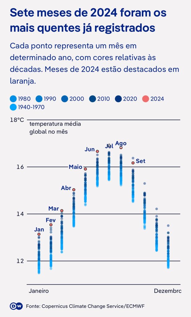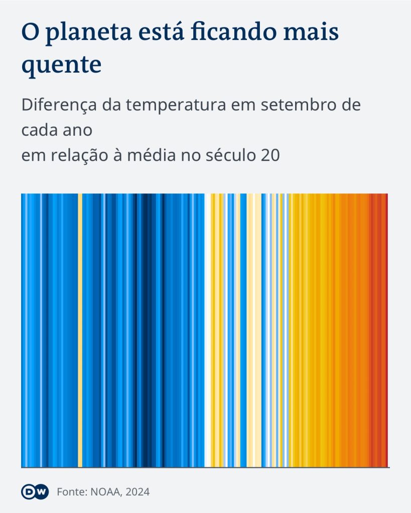 Em nível local ou para meses individuais, a diferença pode ser muito maior. Um exemplo mais concreto: setembro de 2025 foi quase 2 °C mais quente que setembro de 1956.