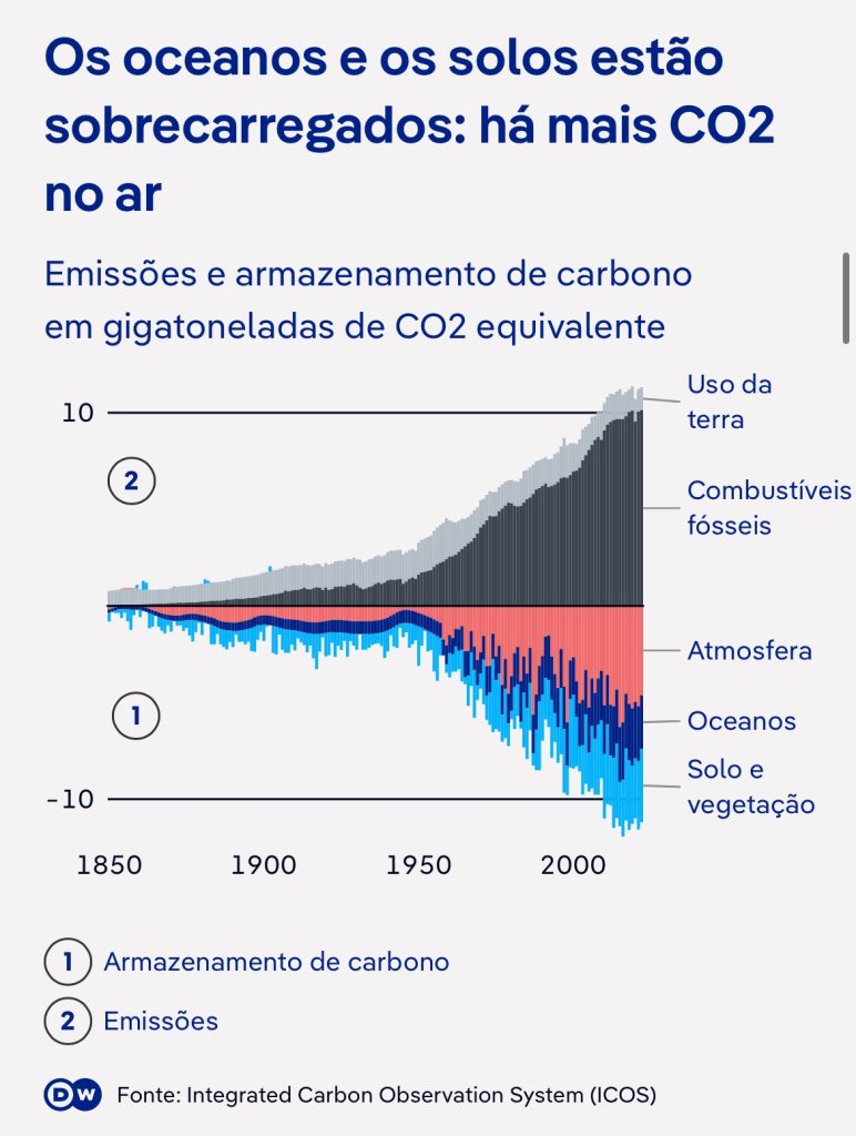As emissões de CO2 provenientes da queima de combustíveis fósseis têm aumentado desde o início da industrialização. Entretanto, como níveis mais altos de dióxido de carbono foram produzidos, a Terra absorveu esses gases em “reservatórios naturais de carbono”, a exemplo de florestas e oceanos.