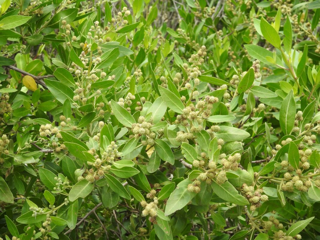 Além do mais, há plantas associadas ao manguezal que não contam com os mecanismos de adaptação desse ecossistema, mas com alta tolerância ao sal, como samambaia-do-brejo (Acrostichum aureum) mololô (Annona glabra), rabo-de-galo (Dalbergia ecastophylla),aninga (Montrichardia linifera), aroeira (Schinus terebinthifolius), guaxuma ou algodoeiro-da-praia(Hibiscus pernambucensis) e taboa (Typha domingensis).