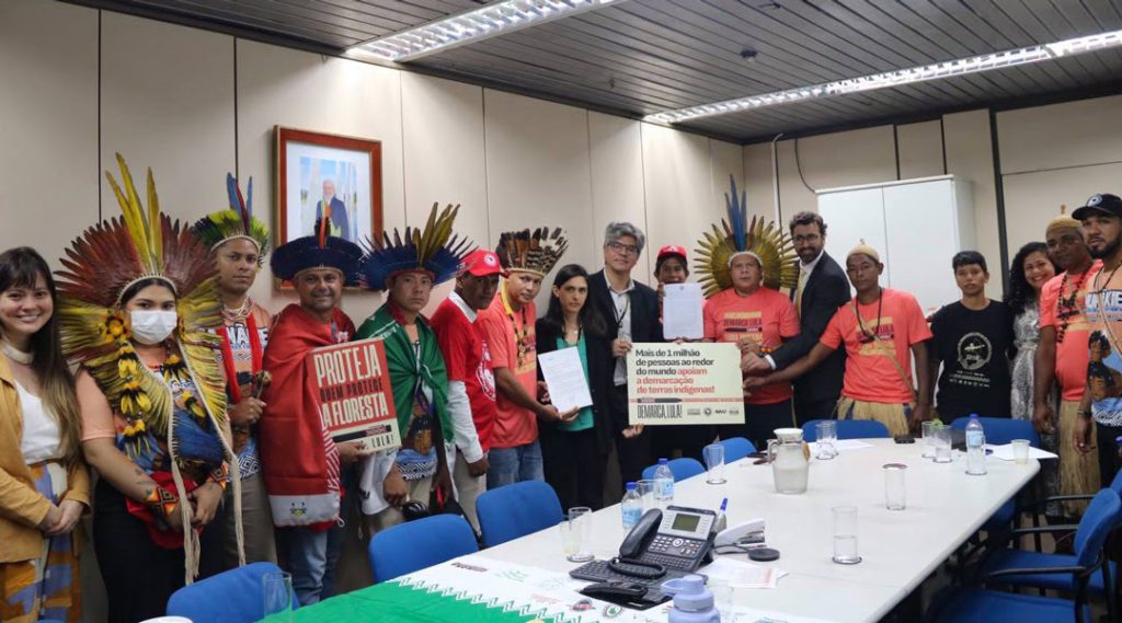Essas assinaturas foram levadas diretamente ao gabinete presidencial, reforçando a mensagem de que a sociedade acompanhava, cobrava e apoiava o avanço da demarcação.